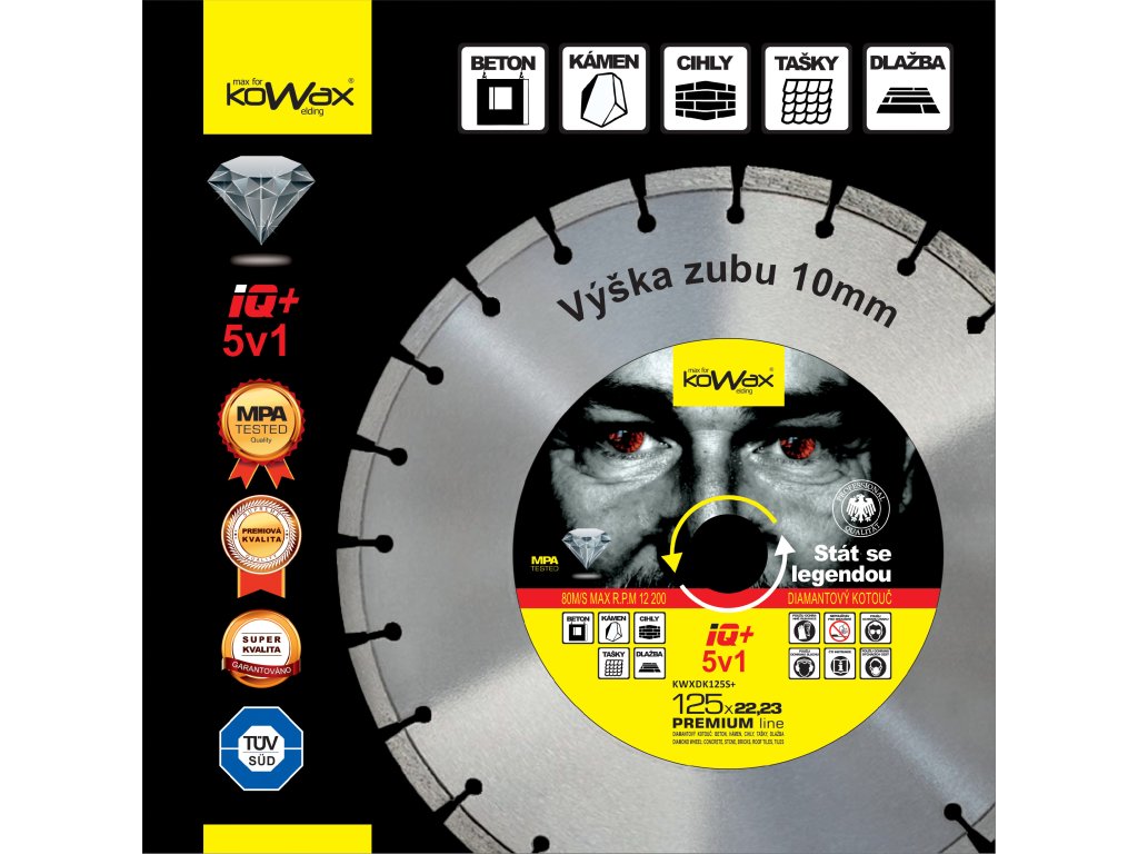 - KOWAX® IQ+ 5v1 DIAMANTOVÝ kotouč řeže: Beton, Kámen, Cihly, Tašky, Dlažbu
