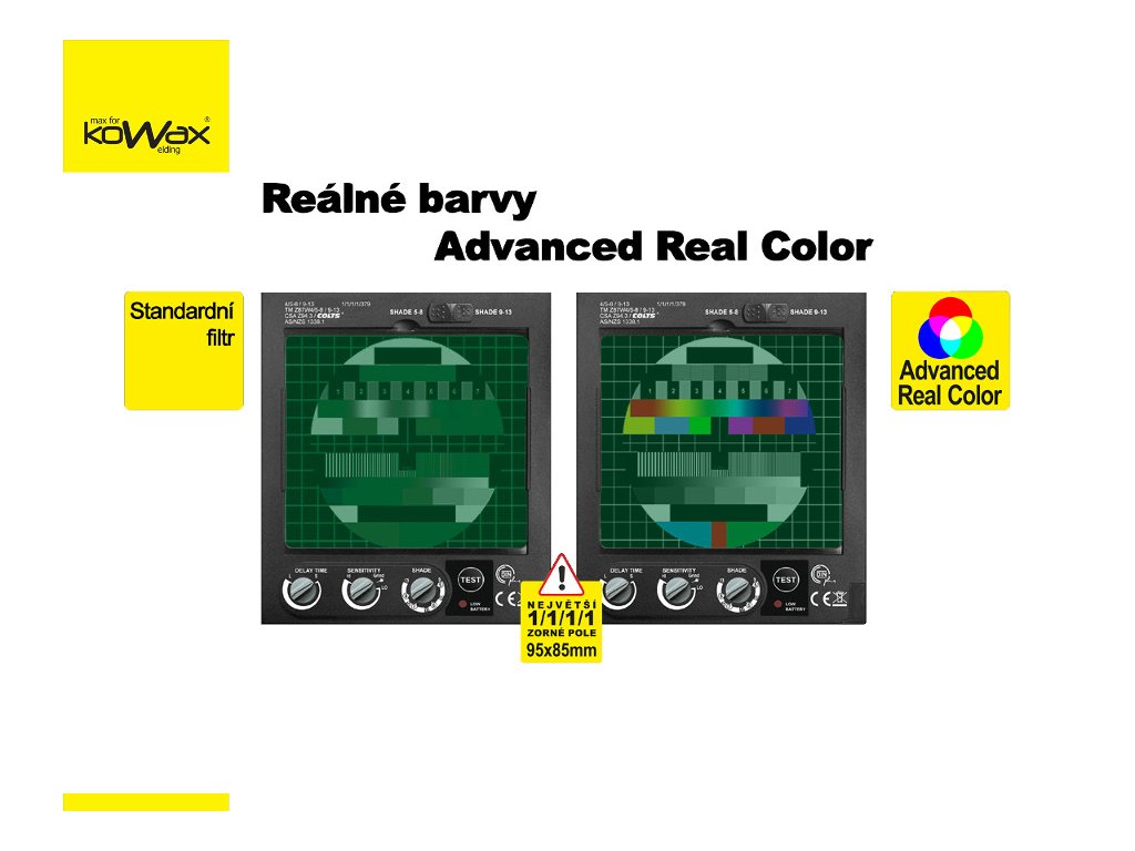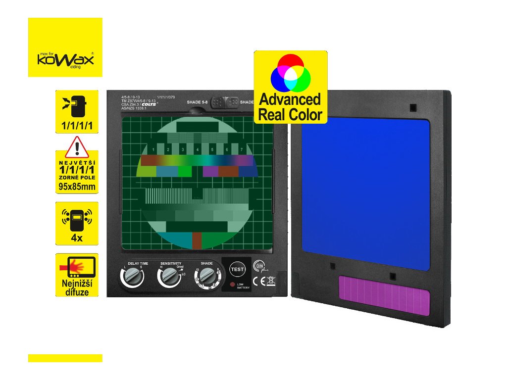 - Nejvyšší optická kvalita filtru 1/1/1/1 EN379, i v této specifikaci jsou mezi jednotlivými produkty na trhu značně rozdíly. KOWAX překonává světovou konkurenci a definuje novou úroveň optického komfortu pro svářeče díky o řád lepším výsledkům v difuzi světla přes zatmavený filtr (druhé číslo ve specifikaci dle EN379 – rozostření – viz.naznačeno viz.naznačeno zde), tato hodnota je zcela zásadní pro opticky komfort při svařování. Vaše oči musí méně doostřovat, což má za následek méně unavené oči, menší sklony k bolení hlavy atd. Poznáte rozdíl.