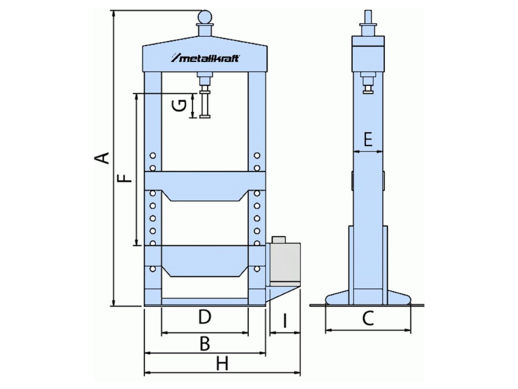 - Možnost posuvu hydraulického válce po horní konstrukci lisu do požadované polohy