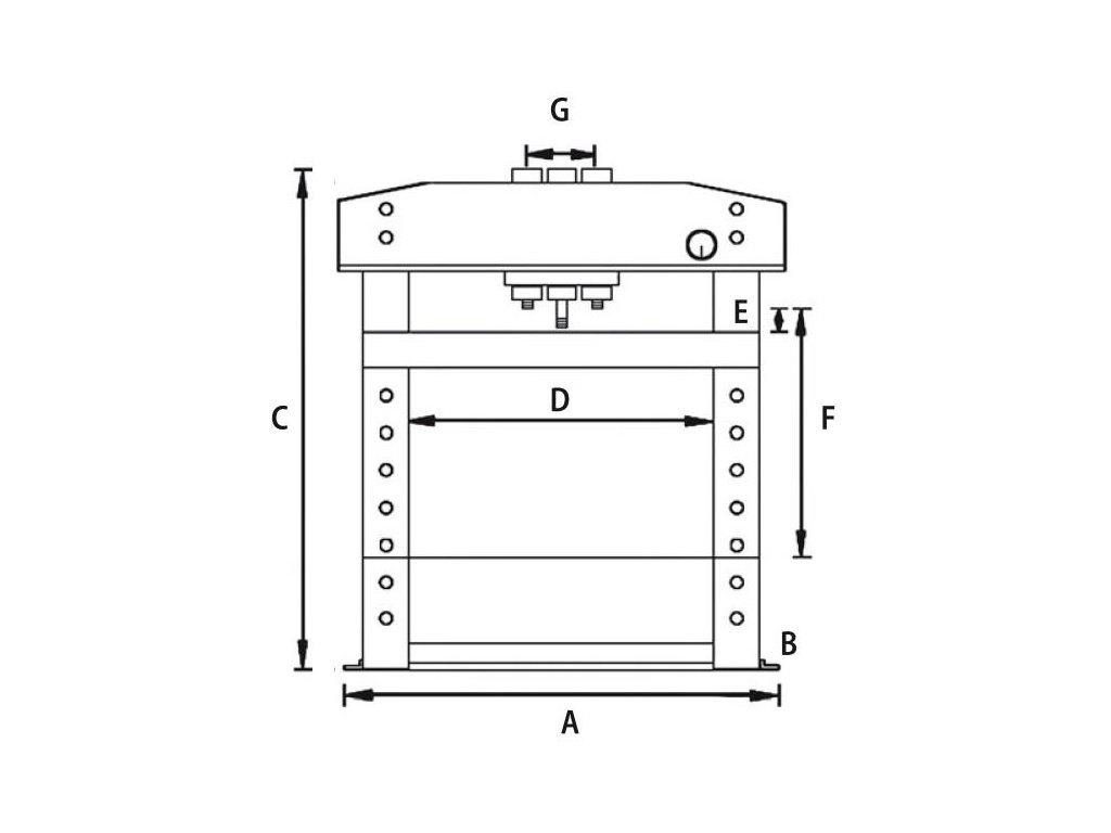 Hydraulický lis s robustním svařovaným rámem s osmi polohami výškového nastavení.