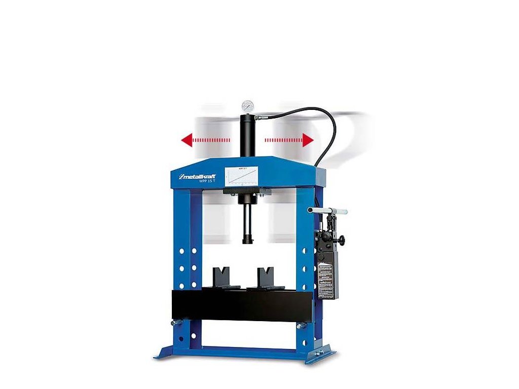 Hydraulický stolní lis s ruční pumpou a pístem po horní konstrukci lisu. Pro všechny opravářské a montážní práce, např. rovnání os, hřídelí, nosníků, atd.; vylisování a nalisování ložisek, svorníků a pouzder; zátěžové zkoušky a kontrola svárů a mnoho dalších.