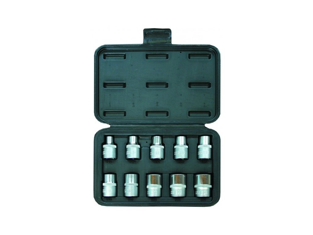 Sada nástrčných hlavic Torx 10dílů je obsáhlou sadou zástrčných 1/2" hlavic pro povolování, nebo utahování šroubů s tvarem hlavy TRX, tzv. hvězdička a to vnějšího provedení.