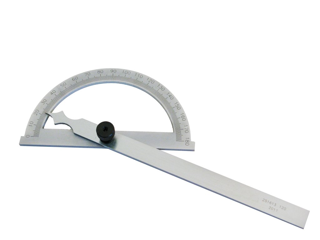 Obloukový úhloměr s čitelnou stupnicí slouží jako odolné a přesné měřidlo.